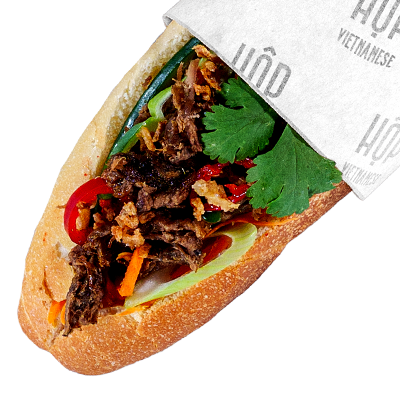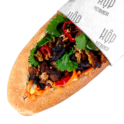 Light crusty baguette spread with our 'Viet Butter', filled with two proteins of your choosing, pickled carrot, cucumber, crispy shallots, spring onions, coriander, sliced chillies and Viet jus.