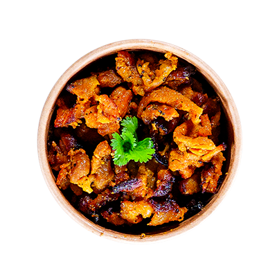 Fable's magically meaty pulled mushrooms in coconut curry sauce. Served with jasmine rice, spring onion oil, crunchy Viet salad, pickled carrot, Viet herbs, crispy shallots, coriander, peanuts and sliced chillies.